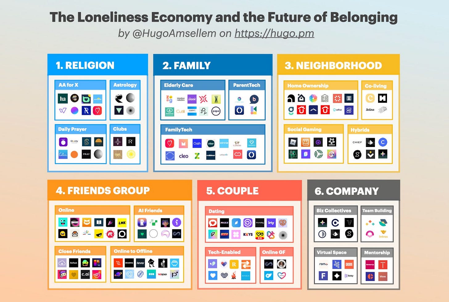 LEARNINGS OF THE WEEK 📚 : According to Hugo Amsellem, General Partner at Intuition: “Loneliness is now one of the most important problems our generation has to solve, alongside climate change and obesity.” So, I decided to explore the topic further to better understand the Loneliness Economy. Here is a deep dive.